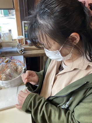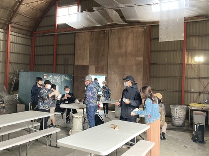 酪農体験のバターか作りをする体験スペースの片隅で毛から草木のゴミ取りが始まりました!