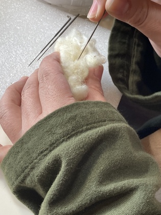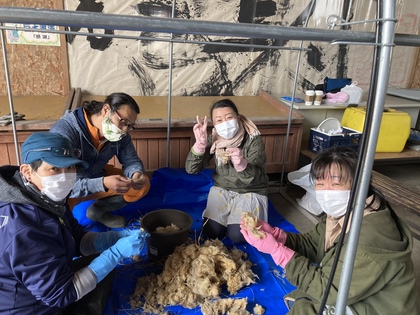 1.まずは3時間ほどかけて羊毛から草木、ゴミ取り。