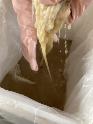 軽く脱水ということで玉ねぎの網でぐるぐる