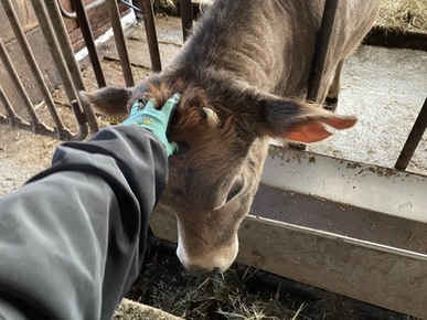 レラちゃんはジャージー牛という品種の牛さんなので薄い茶色をしています!