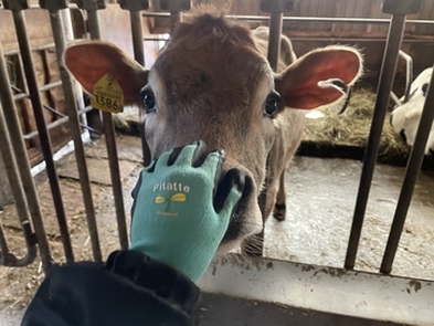 レラちゃんはジャージー牛という品種の牛さんなので薄い茶色をしています!